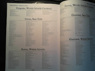 There are some great lists and tables at the end. One breaks out the monsters by Challenge Level. Another groups them by terrain, and includes Basic & Weirder options. There are also encounter tables.
